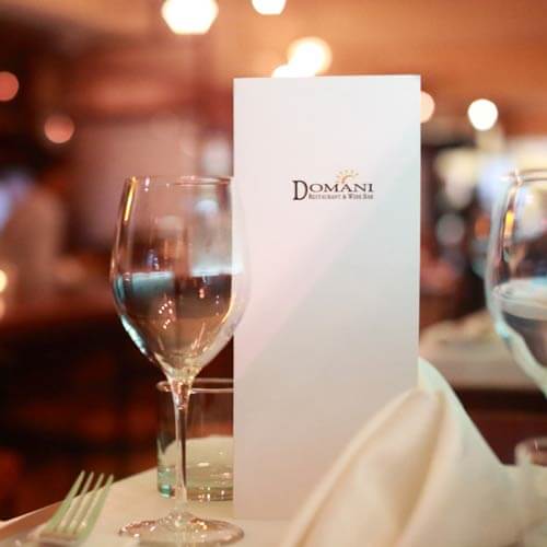 A culinary journey is yours for the taking at Domani Restaurant. We offer an array of dishes that you and your guests will certainly enjoy exploring. We never disappoint. Our culinary universe offers the best in pizza and pasta and our selection of cuisine specialties will take you from Milan to Sicily all in one sitting.